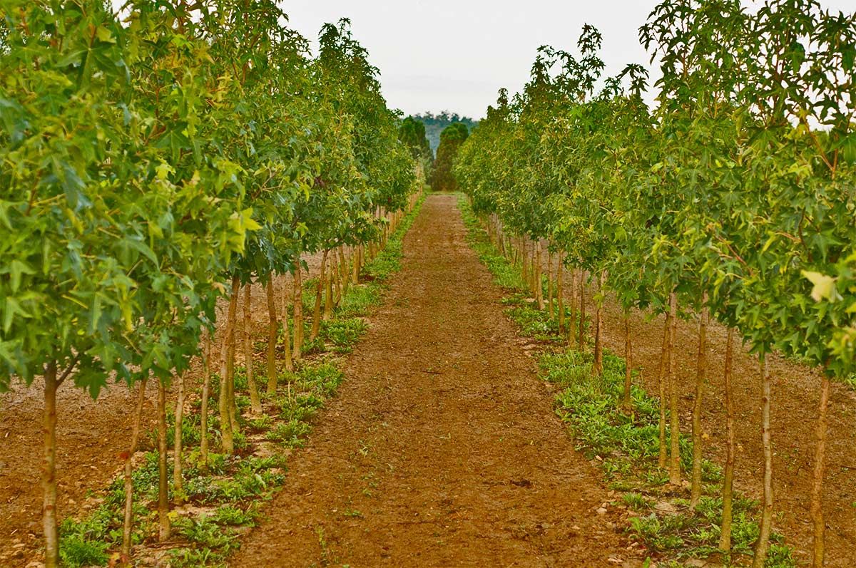 A faiskola teljes területe utakkal szabadföldi és konténeres termesztő felülettel 50 ha.